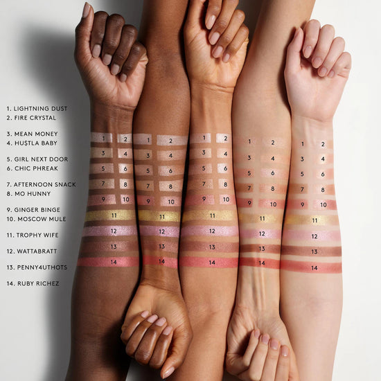 A weightless, long-wear, cream-powder hybrid highlighter for the face and eyes in a range of shades, from subtle to supercharged, in solos and expertly-paired duos